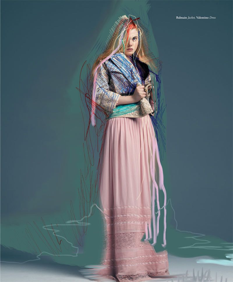 In the latest winter issue of Bullett Magazine, Elle Fanning gets drawn on, covered by brushstrokes and sometimes erased. They call this 'The Surreal Issue' but I don't find the editorial very much surrealistic. Nonetheless, each image was delightful and a work of art by itself. The best was the surprise that Elle Fanning could model so wonderfully. Yes, she's an actress but wow, she's beautiful in this spread!