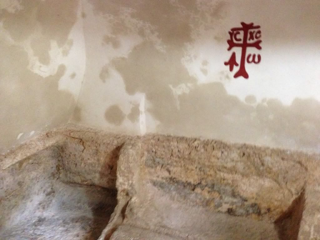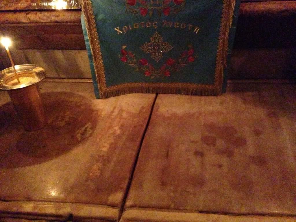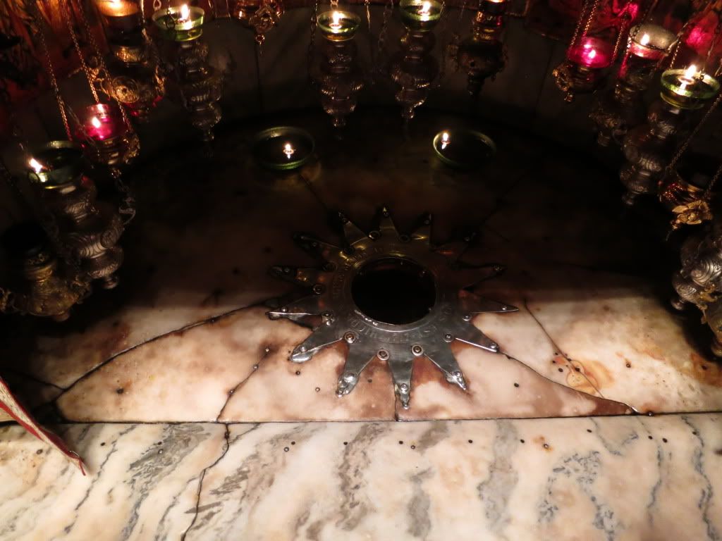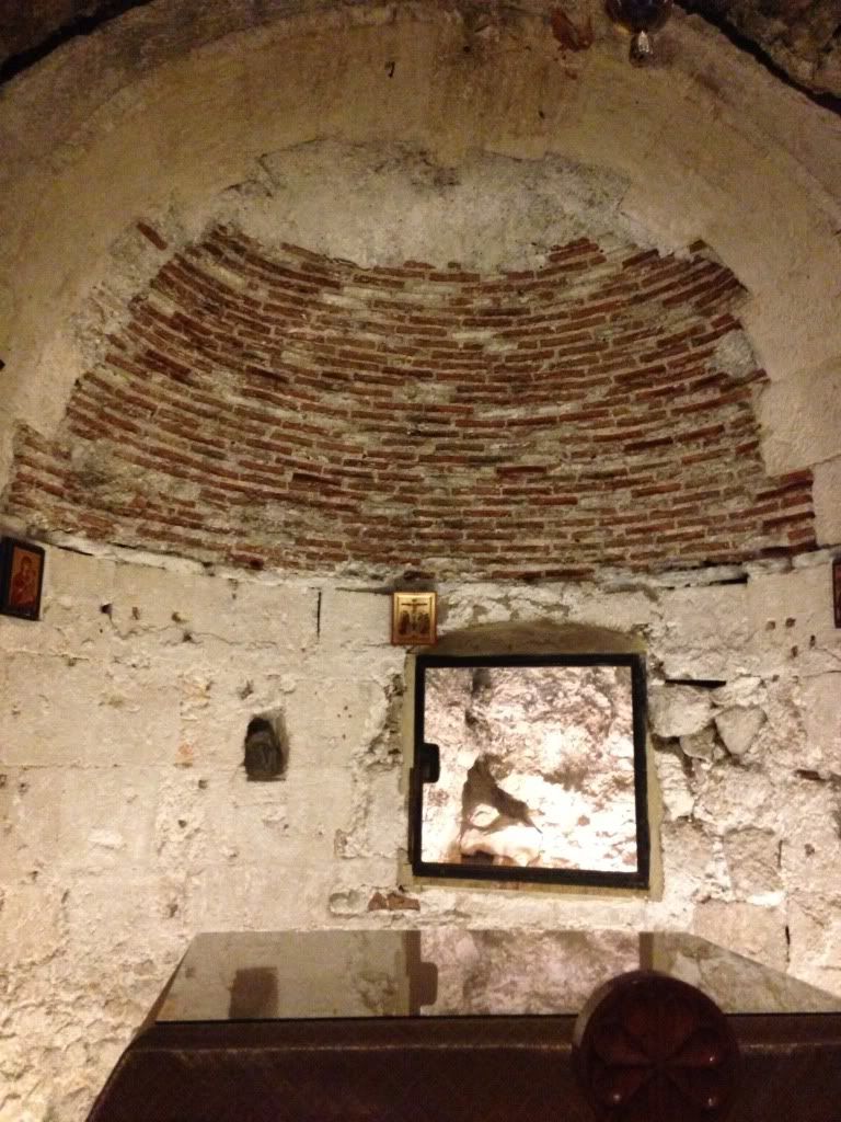 #Apparently, a drop of Jesus' blood dripped on the floor and caused a split on the ground. This is a picture from a level below where the cross stood.