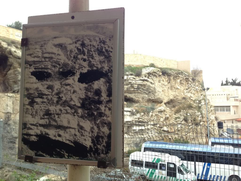 #Garden Tomb. An alternative and more plausible location for Jesus' tomb. The picture shows the original face of the cave when it was excavated in 1883. It resembles the face of a skull which can be translated to 'Golgotha' as mentioned in the bible.