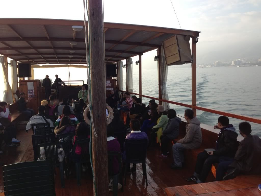 The sea was very calm in the morning but apparently, it can get very stormy and dangerous in the afternoon. On our boat was a group of Christians from Indonesia having a mini-service. Mom, dad and I were eavesdropping on their message in an effort to exercise all the Indonesian vocabs we have learnt (I took Bahasa Indonesia in school last semester!). Ah, they were really fast but we managed to pick up bits and pieces here and there. Funny thing was that we met the same tour group twice later on, once at Capernaum and another time at Tel Aviv.
