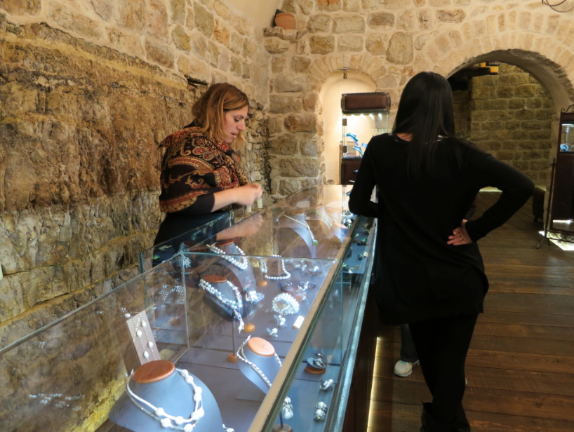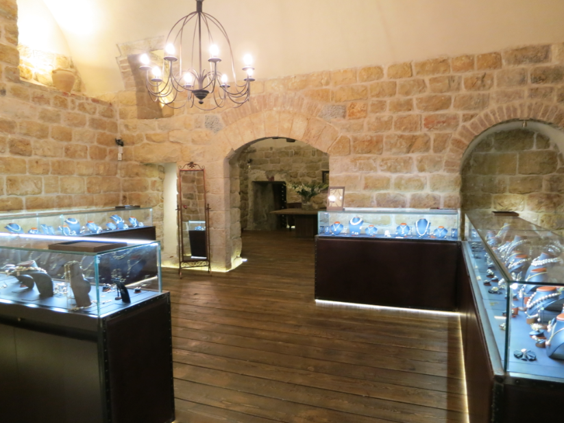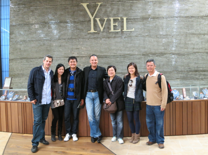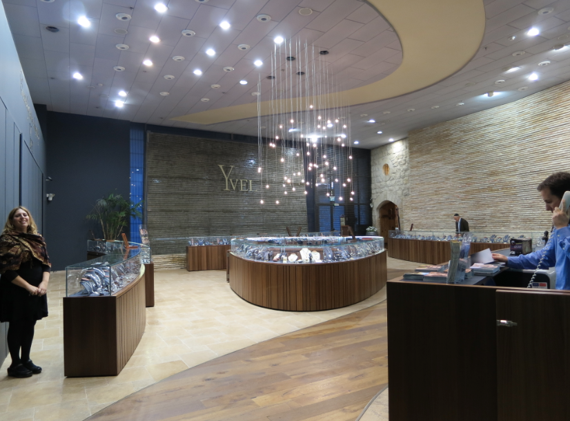 The Yvel showroom is huge, with jewellry made of all kinds of high quality stones. They even have a wine cellar where customers can enjoy a good glass of wine while shopping.
