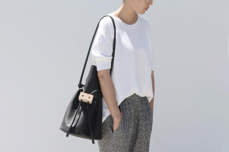 For Spring Summer 2013, the duo create a range of minimalistic leather bags that use wood blocks and rubber cords as fastenings. The beauty of their collection is how simple and soft their bags look despite the clean and industrial design.
