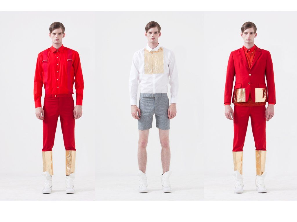 At a glance, the wools and cottons in colours of navy, ultramarine and cobalt contrasted with the bright red and rich gold excites me. But then, there is a robotic stiffness to the collection that makes me feel uneasy. Shirts are pretty fitting and are tucked into pants like soldiers ready for combat. Thankfully, upon physical examination of the clothes, I found them very wearable. The gold pants which can look very confining to movement is actually gold foil printed on pants, so the pants is still soft!